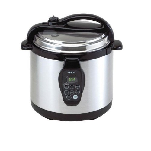 This versatile, multi-functional stainless steel digital 6-quart pressure cooker performs several functions: pressure cooker, slow cook (up to 9-1/2 hours) or steam, brown and warm. Use to make roasts, ribs or chicken, as-well-as rice dishes, soup/stews and steamed vegetables. LED display and soft touch buttons for easy use and programmable with presets including a delayed start up to 8 hours. Pressure cooking with the Nesco will cut cooking time by up to 70-percent. Automatically switches to warm setting after cooking cycle is complete. Comes with self-locking lid with automatic pressure release valve. Removable non-stick cooking insert is dishwasher safe for easy clean up. Also includes cooking rack/trivet and the stay-cool handles prevent burns. Brushed stainless steel exterior.